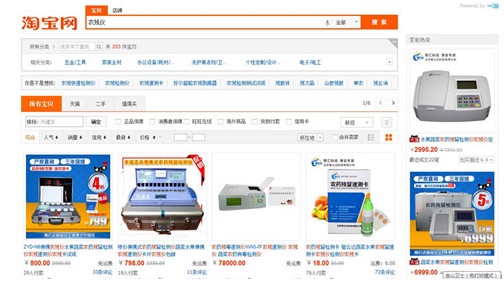 接下來點擊“農殘儀”關鍵詞進入天貓網頁搜索頁面,就會出現不同類型和價目的農殘儀。首先映入眼簾的是智云達ZYD-NB便攜式水果蔬菜農藥殘留速測儀,還有6通道和12通道農藥殘留速測儀,農藥殘留速測卡等多款智云達的代表性快檢產品都呈現在搜索頁面中,可見智云達天貓店鋪的快檢產品已牢牢占據淘寶熱搜排行榜搜索排名第一的優勢,智云達店鋪在淘寶中保持快檢產品品牌第一是毋庸置疑的。