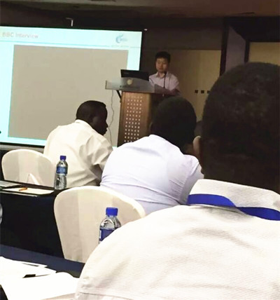 洽談會(huì),首先是加納灌溉發(fā)展局副主任哈蒙弗朗西斯丹宣講加納在節(jié)能減排的現(xiàn)狀。