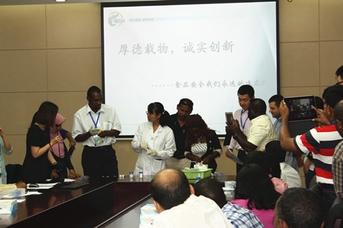 首先,簡短介紹公司及產品(26日技術宣講時已詳細的介紹)后,活動的主要安排是快檢實操、問題解答和參觀實驗室。剛介紹完企業產品,友人已經開始不停提問,表現出對公司產品極高的關注度。