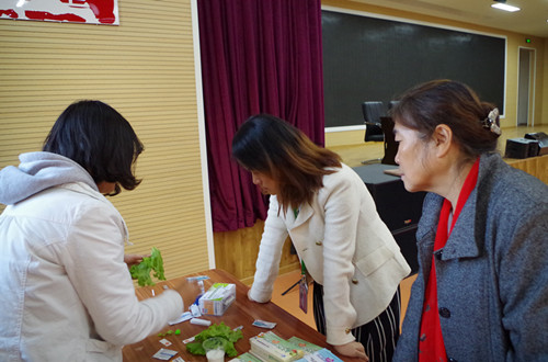 食品安全檢測(cè)消費(fèi)者體驗(yàn)中心的老師帶領(lǐng)同學(xué)們親自動(dòng)手體驗(yàn)蔬菜中農(nóng)藥殘留檢測(cè)
