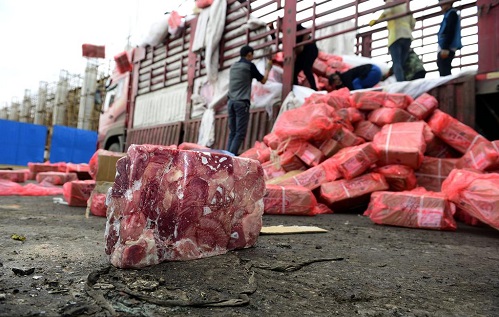 據省食藥監稽查局局長胡德強介紹,我省一直以來都不是走私冷凍肉的主銷地,而是集散通道。通過在公路上設置卡點,查獲的運輸冷鏈車發現,這些無檢驗檢疫證明、沒有中文標識的走私冷凍肉多來自于法國、巴西、美國、印度、澳大利亞等,品種包括鳳爪、豬肚、凍牛肉、凍羊肉、牛排等。