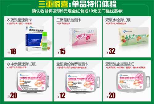 尤其常見的農藥殘留速測卡、三聚氰胺速測卡、雙氧水快速檢測試紙等多款適合家庭、個人的快檢產品超低價體驗。