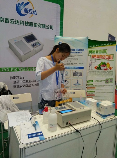 在“科學(xué)儀器走進(jìn)百姓生活”活動展示區(qū),北京智云達(dá)為參會觀眾現(xiàn)場開展免費(fèi)的食品安全檢測展示,現(xiàn)場進(jìn)行了果蔬中農(nóng)藥殘留檢測、食品中二氧化硫檢測等演示實(shí)驗(yàn),圍觀群眾不時提出疑問,現(xiàn)場技術(shù)人員一一解答。
