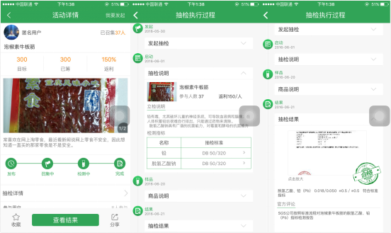 看了這么多是不是能勾起你的回憶了呢?盡管辣條里面有我們的青春,可是一直到現在我們仍在質疑是不是五毛錢的食品只有五毛錢的安全呢?所以在食之安app的后臺現被發起眾籌檢測的食品里面,百分之三十七是辣條,而就在幾天前籌滿送檢的泡椒素牛板筋的檢測結果也已經出來了,那么到底合不合格呢?看圖↓↓↓