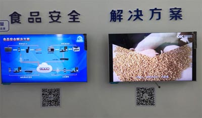 參展期間,在新疆電信食品安全解決方案展示區,展位視頻循環播放北京智云達食品安全解決方案的詳細介紹,流程及適用對象、監控系統。在電腦屏幕前,前來詢問解決方案系統的人絡繹不絕,更有感興趣的外國友人跨越語言障礙,耐心聽我們的技術人員一一做詳細解答。同時在參展區展示北京智云達自主研發生產的快速檢測儀、快速檢測試劑盒,來自伊朗的國際友人對儀器頗有好感,進行詳細咨詢。電視下方設置關注官方微信二維碼,方便興趣人員關注留言。