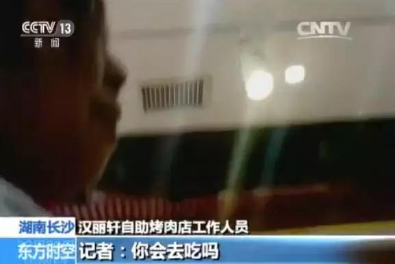 再來回顧一下,去年12月,湖南經視記者臥底長沙一家漢麗軒門店,就發現這家49元隨便吃的自助烤肉店,用鴨肉冒充牛肉,經過特殊醬料腌制后,顧客根本不會察覺。