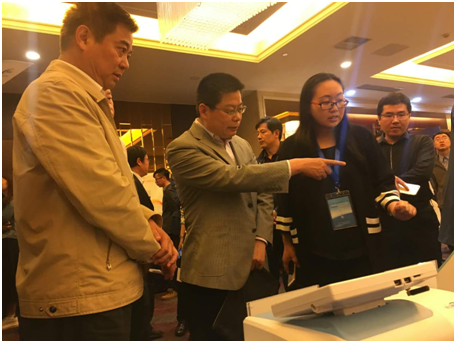 圖2 國家質(zhì)檢總局科技司周舉文副司長和中國出入境檢驗檢疫協(xié)會王新會長關(guān)注智云達食品安全快速檢測產(chǎn)品