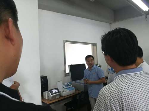 參觀團還特意參觀了北京智云達位于昌平園區(qū)的生產(chǎn)車間,北京智云達程文勝程總帶領(lǐng)大家參觀并講解了儀器組裝生產(chǎn)線,北京智云達試劑研發(fā)部經(jīng)理嚴可以嚴老師為大家分享公司的發(fā)展歷程及產(chǎn)品特色。北京智云達是一家專注于食品安全快速檢測產(chǎn)品及配套軟件研發(fā)、生產(chǎn)、銷售和服務(wù)的高新技術(shù)企業(yè),截止目前已研發(fā)出食品安全快速檢測試劑盒、檢測箱、食品(農(nóng)產(chǎn)品)檢測儀器等六大系列400余種食品安全快速檢測產(chǎn)品。