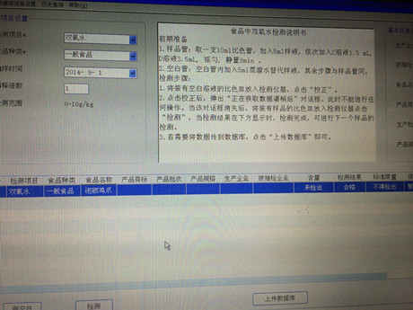 4、倒入比色皿中,置于PCS多功能食品安全檢測儀中檢測。檢測結果:兩個樣品均未檢出雙氧水。